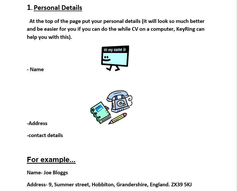 Created by KeyRing Living Support Networks Download Here Make a CV This file shows you what to put on your CV.If you don’t have a computer, you will need some paper and pens for practice.